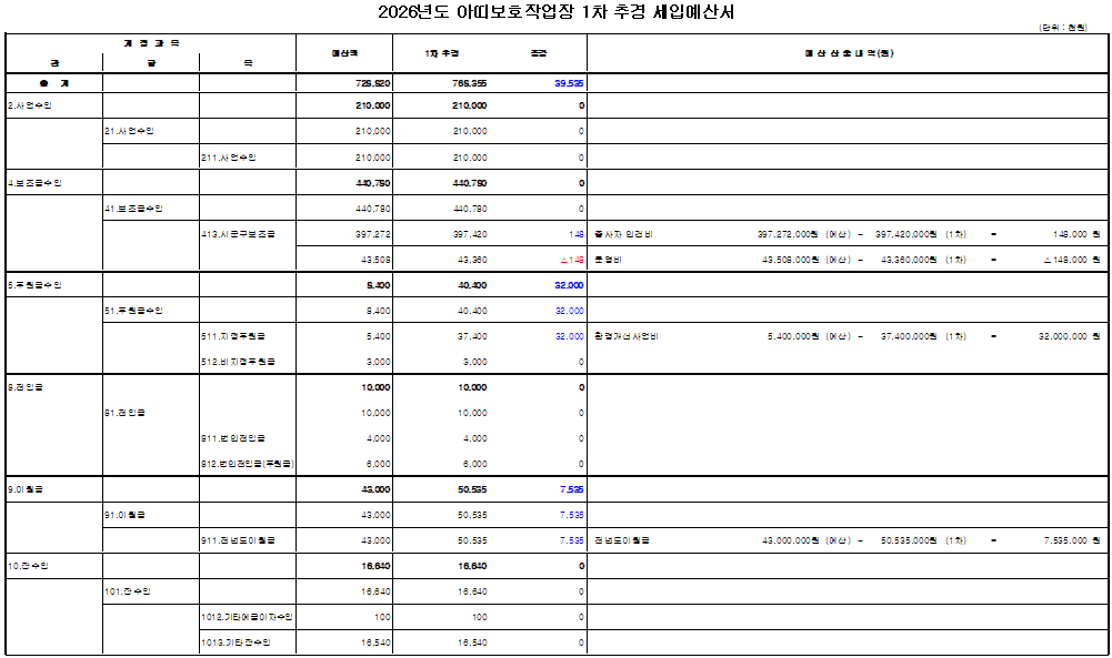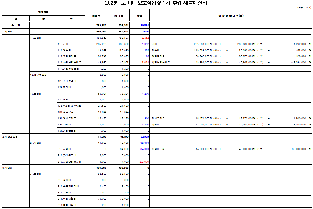 2026년도 아띠보호작업장 1차 추경